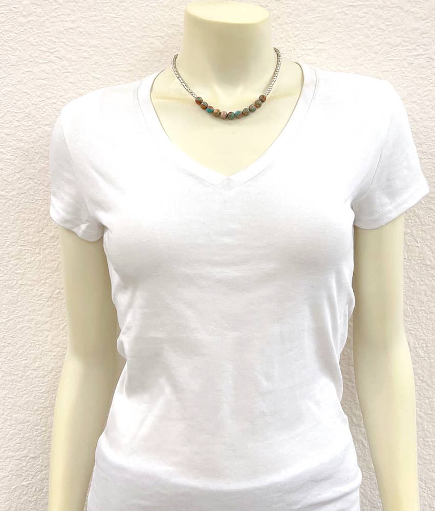 15" to 20" Long, Handmade 8mm Round Gemstone, 4mm Silver Navajo Bead Necklace