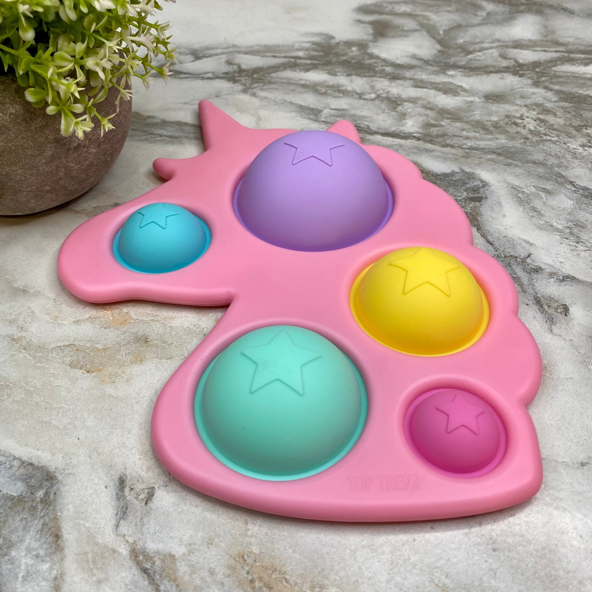 Introducing OMG! Mega Pop XL UNICORN! The fun bubble popping fidget toy! Each unicorn has a hard shell exterior with soft silicone bubbles inside.