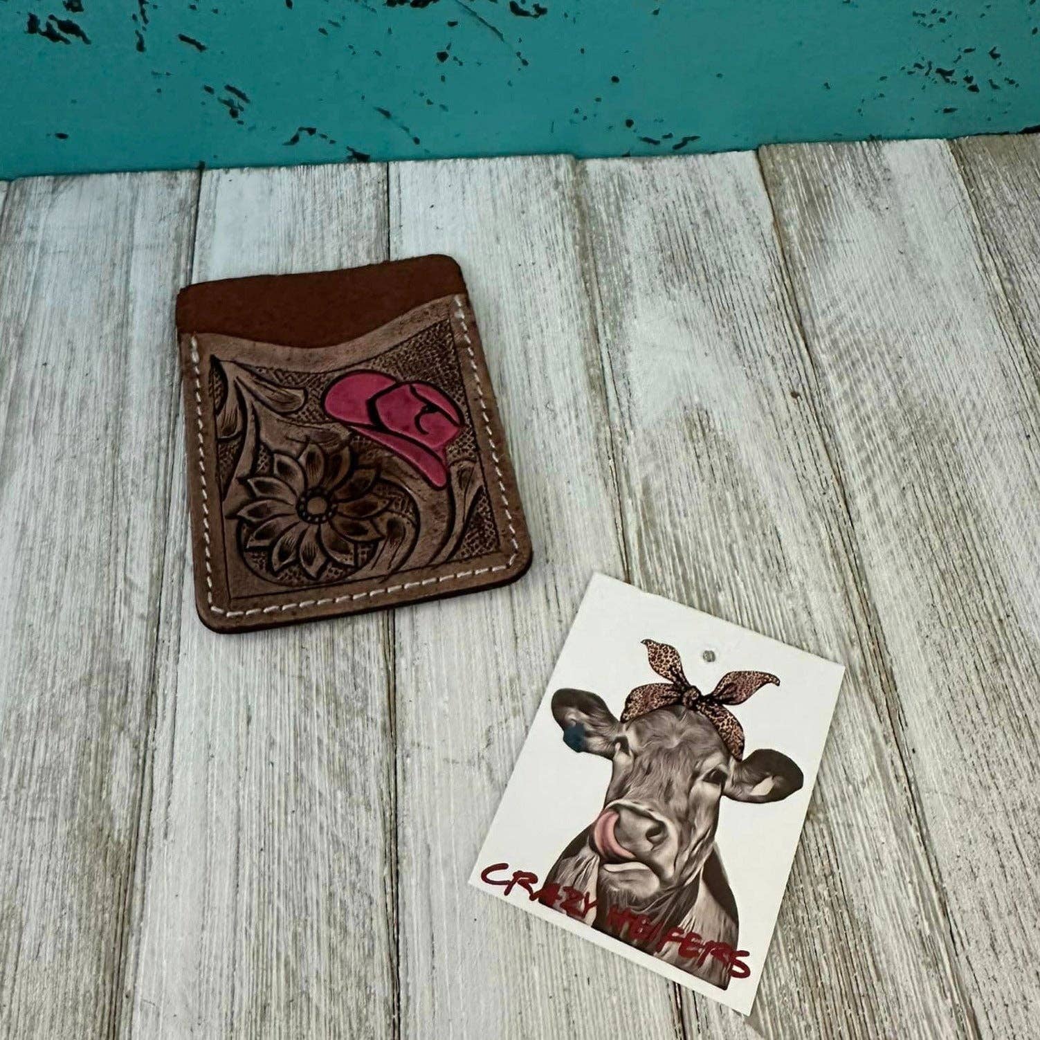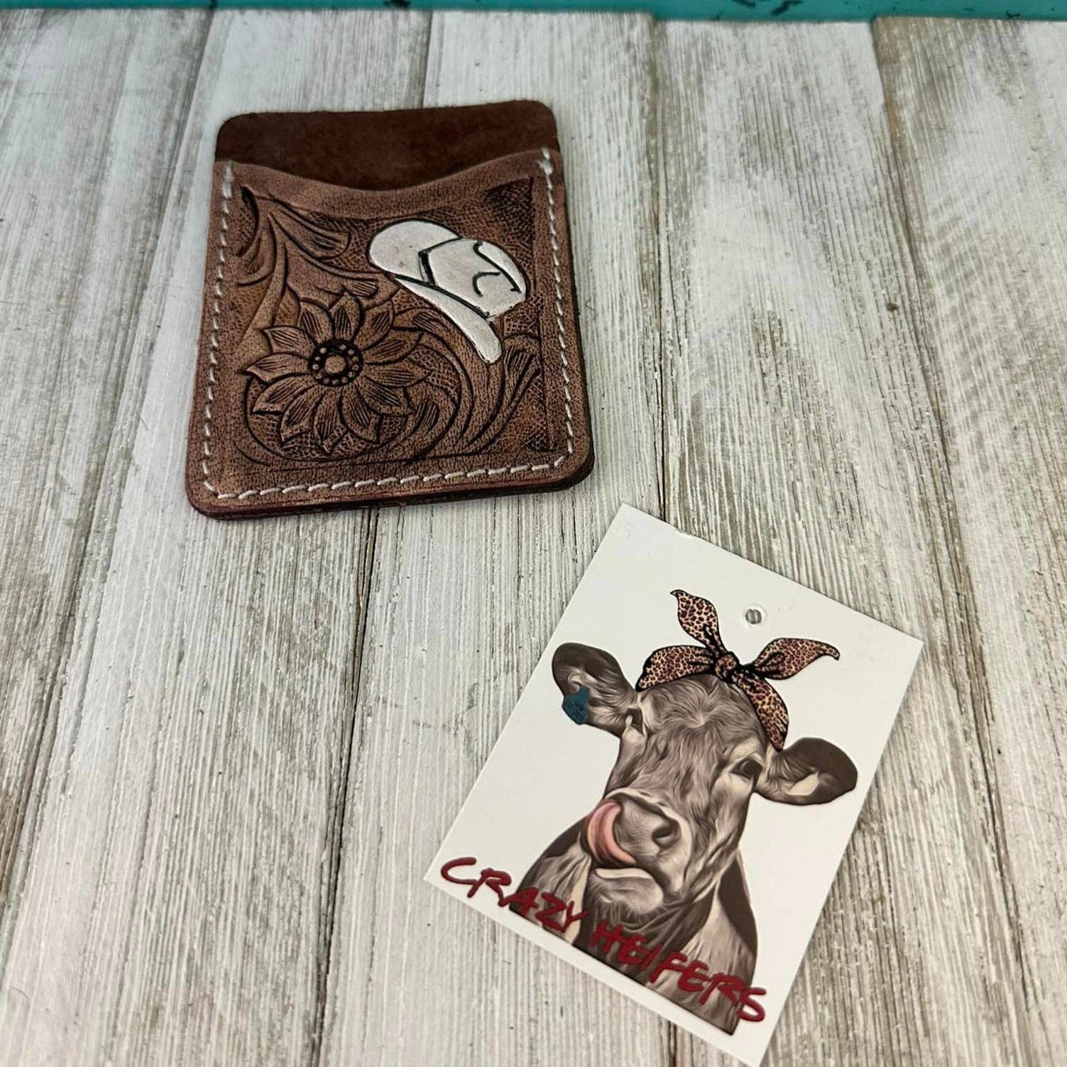 Carry your cards in style with our Tooled Card Holder! Measuring at 4x3 inches, this handmade holder features beautiful tooled leather for a unique and durable look. Keep your cards organized and protected in a product that is made to last. Impress others with your fashion and functionality!