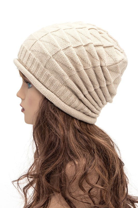 Unisex Raised Knit Slouchy Beanie